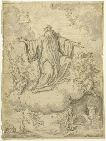 Valentin Lefèvre created this drawing of the Virgin and Child surrounded by saints and angels in the 17th century. The upward gaze and kneeling figures draw us into the spiritual realm, where saints ascend on swirling clouds. The clouds themselves carry symbolic weight, appearing as early as ancient Greek art, as a separation between the earthly and divine. Consider how, even in early Mesopotamian art, gods were often depicted on mountain tops, above the mortal realm. We see the emotional power of the ascension motif in countless works throughout history, from the Assumption of Mary by Titian to the more modern works of Odilon Redon. The act of looking upwards triggers a primeval response, connecting us to the hope of transcendence. This shared visual language transcends time, speaking to our collective desire to bridge the gap between earthly existence and the heavens. Lefèvre masterfully evokes this yearning, reminding us of the enduring power of symbols to stir our deepest emotions and connect us to the past.