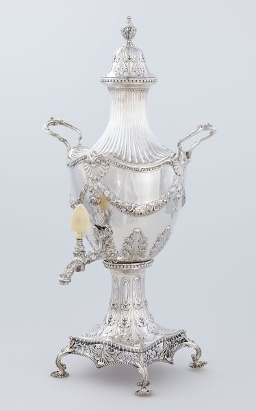 This ornate centerpiece was crafted in the Netherlands by Johannes Mattheus van Kempen, and it's made of gleaming silver. The material itself speaks to the opulence of the era. Silver, with its inherent luster and malleability, was the perfect choice for creating such an elaborate piece. Consider the amount of labor involved: each curve, each flourish, each tiny detail meticulously shaped and polished. The silversmith would have employed a range of techniques like casting, chasing, and engraving to achieve the final result. But this isn't just about technical skill, it's about social context. Objects like these were status symbols, reflecting the wealth and power of their owners. The silver centerpiece would have dominated a dining table, reflecting candlelight and impressing guests with the owner's refined taste. This reveals the hierarchies of labor and class that underpinned this era. It encourages us to consider the relationship between artistry, industry, and social status.