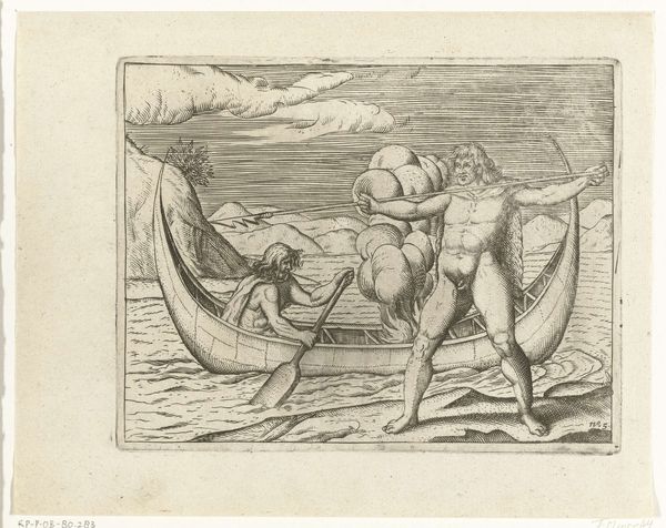 Albert Flamen created this etching called "Visvangst op het gras" in the Netherlands in the 17th century. In this image, a pile of fish lies on the ground next to a net and a boat, while birds fly overhead. During this time, the Dutch Golden Age was in full swing, marked by economic prosperity and dominance in trade and maritime activities. Fishing was a crucial industry, deeply intertwined with the nation’s economy and cultural identity. The Dutch relied heavily on fish for sustenance and commerce. In this context, Flamen's depiction of a fishing scene can be viewed as a celebration of Dutch maritime prowess and economic success. The image subtly reinforces the social and economic structures of its time. To fully appreciate Flamen's work, one can consult historical archives, economic records, and studies on Dutch maritime history to understand the societal forces that shaped its creation.