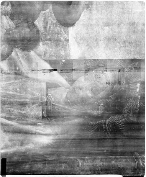 Curator: Here we have an x-radiograph of "Madonna and Child" from the school of Sandro Botticelli, housed here at the Harvard Art Museums. Editor: Haunting, isn't it? Like a ghost of a painting. A glimpse beneath the surface, stripping away the color, revealing the bare bones of the creative process. Curator: Precisely. Radiography allows us to see the underdrawing, the artist's initial intentions, and any later alterations. The Madonna becomes an archetype, a primal maternal figure defined by flowing lines. Editor: It's like an x-ray of faith itself, revealing the structure beneath the belief. Seeing the scaffolding, though, doesn't diminish the mystery, does it? Curator: Not at all. It enhances it, revealing the layers of meaning and the hand of the artist, both visible and invisible, shaping the enduring image. Editor: Indeed. We are left contemplating not just a beautiful image, but its hidden history.