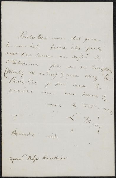 Editor: This is "Brief aan Anna Dorothea Dirks" by Isaac Israels, dating from 1875 to 1929. It's an ink drawing on paper. The hurried script and smudges suggest a quick, personal communication, almost ephemeral. How would you interpret this piece, focusing on its form? Curator: Note how the artist utilizes line – nervous, rapid strokes. Observe the density and the varying pressures exerted on the pen, constructing tonal variations in an otherwise monochrome field. This creates an immediate sense of urgency, even anxiety, solely through formal means. Does this approach suggest any experimentation, or the testing of different graphic vocabularies? Editor: I see what you mean. The lines feel exploratory. They build the image without being strictly representational, almost like a study in texture. Do you think this approach could be used on any artwork, irrespective of cultural context? Curator: Not always, however in this case, by concentrating solely on the lines and their arrangement, we understand more about the movement and perhaps intent. What do you take away from this experience? Editor: It highlights how focusing on elements like line, tone, and composition alone, rather than external references, reveals much about an artwork’s emotional and dynamic qualities. Curator: Precisely. Formal analysis allows for a direct engagement with the artist's process and the intrinsic properties of the work itself.