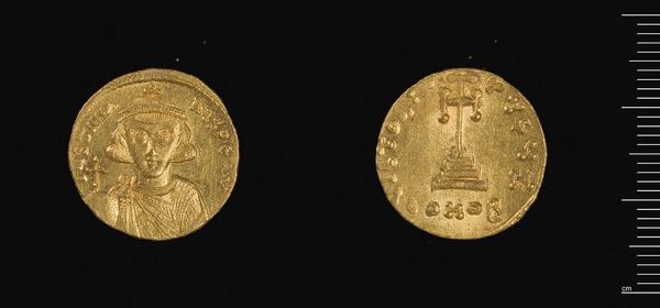 Curator: Here we have a gold tetarteron, a Byzantine coin, issued under the reign of John I Tzimiskes. Its crafting reflects the economic and political forces at play in Constantinople. Editor: It’s almost unbearably shiny! The light just dances off its surface. I feel like I could hold it, and a whole world of emperors and intrigue would be revealed. Curator: The deliberate choice of gold signifies wealth, power, and imperial authority. Each strike of the die represents skilled labor and the control of resources during that period. Editor: It’s amazing to think about the hands it passed through, the trades it facilitated. It's not just a pretty object; it's a story of human interaction, isn’t it? Curator: Absolutely. The material speaks to networks of trade, taxation, and even imperial ambition. Considering its modest 4.16-gram weight, its historical significance is immense. Editor: Yes, sometimes the smallest things contain the biggest stories. I find myself pondering who clutched this coin, what dreams it fueled. A little treasure indeed.