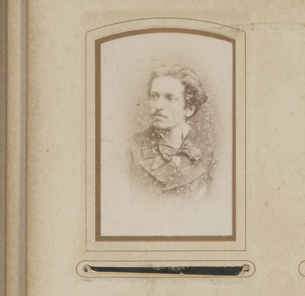 Editor: So, here we have a photographic portrait called "Portret van een vrouw met muts", placing it somewhere between 1862 and 1900. The photographers were Wegner & Mottu, and it’s currently held in the Rijksmuseum. It feels like a very constrained image; there’s a certain stiffness about the pose and expression. What strikes you when you look at it? Curator: What jumps out to me is the duality in how she presents herself. On one hand, we have the stern, almost severe expression and formal attire – symbols of social respectability and perhaps inner stoicism, a preservation of dignity. On the other, she adorns her head with what appear to be flowers. What do flowers signify? And why this particular choice of headwear? Editor: Perhaps to soften the image a little? The contrast does seem intentional. Is it maybe about balancing personal identity and social expectations? Curator: Precisely. In Victorian photography, clothing and adornment weren’t just about aesthetics; they were coded messages. The flower-adorned bonnet could speak to an aspiration, a whisper of beauty against a backdrop of social constraint, or even remembrance through a funeral bonnet with flowers, and she presents that symbolism as much for herself, and perhaps even God. Do you get a sense that this is performative presentation, or more deeply embedded? Editor: I think it's fascinating how much information and intent could be packed into a single portrait like this. Looking closer at the background versus the subject it highlights just how powerful a well-taken portrait is! Curator: Indeed. It speaks volumes about identity, memory, and the stories we choose to tell, and those that were simply and necessarily present at the time. There's so much contained in this deceptively simple image that we often are not prepared to recognize at face value, however!