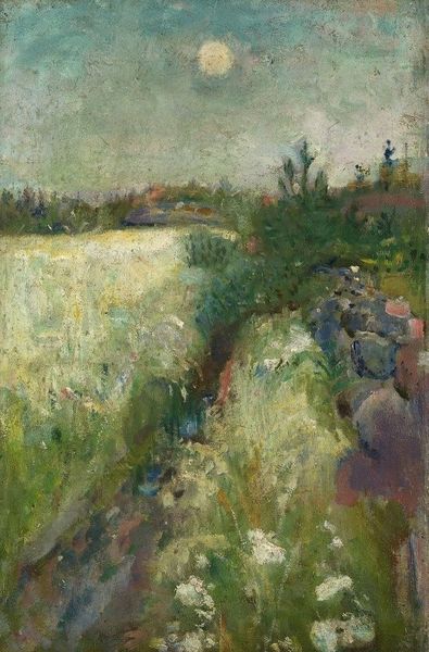 Kazimir Malevich created this oil on canvas painting, titled "Fields", during a transformative period in Russian history. Malevich, born in Ukraine, experienced first-hand the social upheavals of the late 19th and early 20th centuries, including the rise of peasant movements, industrialization, and ultimately, the Russian Revolution. In this landscape, we see a pastoral scene rendered with expressive brushstrokes and a vibrant palette. The red roofed buildings and cultivated fields suggest a harmonious relationship between humanity and nature. Yet, the turbulent sky hints at the unrest roiling beneath the surface. Malevich's artistic journey mirrored these societal shifts, evolving from impressionism to suprematism, an abstract art movement focused on basic geometric forms, and the rejection of traditional representation. As you consider this painting, reflect on the complex interplay between identity, place, and the socio-political forces shaping our perceptions of the world. "Fields" becomes more than just a landscape; it's a mirror reflecting the tumultuous changes of an era and the artist's negotiation of his place within it.