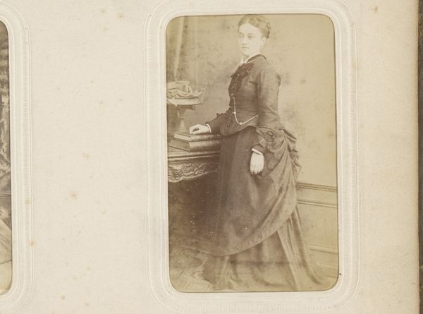Curator: Looking at this early photograph, there's such an intense yet subtle narrative playing out. Editor: Yes, there is a striking contrast of light and shadow here that captures my attention, and imbues the scene with an almost melancholic feel. The women are serious, caught in a moment of… what is it? Curator: Indeed. The gelatin-silver print, “Portrait of Woman and Child”, was produced around 1855 by Jean-Baptiste Frénet. Examining Frénet’s place in 19th-century France provides an illuminating framework for the reading of this image. Photography, a relatively recent invention at that time, was starting to democratize portraiture. What strikes me is how gender and class are being negotiated here through the artistic language of romanticism. Editor: The composition feels posed yet strangely intimate. The seated woman looks directly to the left, she's holding a white flower while the standing girl gazes at the seated woman as if she's looking for acceptance or silently delivering something... This highlights complex issues of class within familial relations and gender roles of the era, wouldn’t you agree? The flower seems quite symbolic. Curator: Precisely. Consider the flower in relation to the historical discourse surrounding women during this era. Often linked with themes of beauty, fragility, and domesticity, flowers could serve as potent symbols encoding social expectations and moral virtues. Also, looking at how the girl seems to be serving, and maybe a hidden reference to family labour at the time. This photographic genre itself challenges previous portrait painting norms by capturing likeness at an accessible cost to bourgeois audiences. Editor: How was photography shaping broader perceptions and social constructs around female identity back then? This photograph, especially, is like a historical artifact. I also imagine, looking at the composition, that the photograph attempts to portray not merely physical appearance, but inner states. Curator: Precisely. I see it as actively shaping, questioning, and memorializing gender and class through its formal strategies, and its place within the 19th-century social landscape of France. It serves as a powerful touchstone for revisiting how we think about photographic art's public role then and even now. Editor: Yes, it seems this is an archive not merely of documentation but of contested identities rendered visible through light and shadow. Curator: It indeed prompts deeper reflection on intersectional identities, agency, and representational power in the nineteenth century. Editor: And allows us a view of how cultural shifts materialize, shaping how women present themselves to the world in an era caught between Romanticism and revolution.