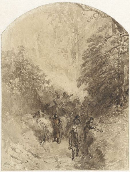 This rocky landscape was composed by Barend Cornelis Koekkoek using graphite and brown wash on paper. The earth-toned palette emphasizes the natural features of the scenery. You can see how the artist utilized graphite to create the outlines of the jagged cliffs, the trees and the rough terrain, while the brown wash provides depth, volume, and shadow, building a palpable sense of atmosphere. Koekkoek's technique is a dialogue between precise drawing and expressive tonal washes. His interest in nature extends from the grand geological scale to the texture of the natural world. This resonates with a broader cultural interest in landscape during the 19th century, as artists turned their attention to their immediate environments, reflecting on nature's sublime power. Here, the artist's choice of humble materials allows him to capture nature's grandeur, reminding us that the most profound artistic statements can arise from simple means.