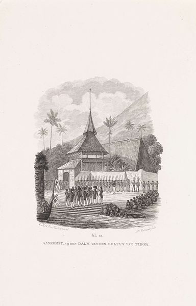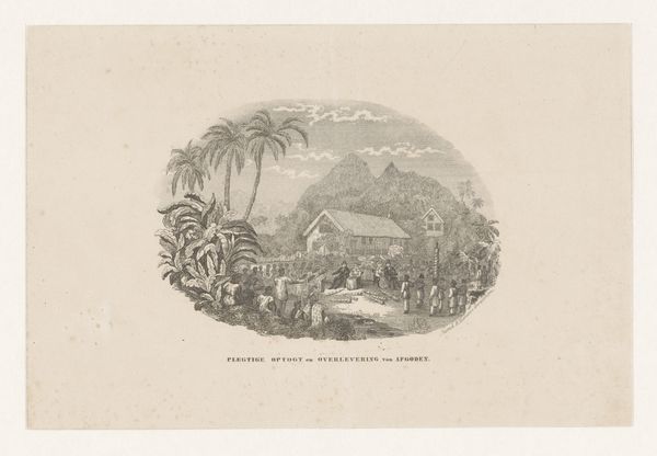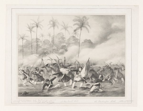 Daniël Veelwaard created this print, "The Rediscovery of the Only Surviving Child of the Murdered Resident van den Berg," sometime in the late 18th or early 19th century. It depicts a Dutch colonial scene, likely in the Dutch East Indies, now Indonesia. The print offers a glimpse into the complex interplay of power, identity, and colonial history. The artist invites us to consider the human cost of colonial expansion, but through a very particular lens. The recovery of the child, orphaned by violence, evokes an emotional appeal, yet it is framed within a narrative of colonial authority and presumed benevolence. The child, positioned centrally, becomes a symbol, perhaps of innocence rescued, but also of the colonial project’s supposed civilizing mission. Consider the racial and cultural dynamics at play: the clear visual distinction between the colonizers and the colonized, the asymmetry of power inherent in the scene, and the underlying assumptions about whose lives are valued and whose stories are told.