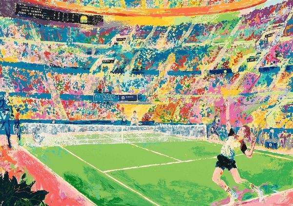 LeRoy Neiman captured this image of Super Bowl VI with paint, using an action-packed, colorful style. Flags wave from the top tier of the stadium, a motif used since ancient times to signify territory or triumph. Here, these flags are not merely national or heraldic symbols; rather, they mark the boundary of collective emotion, the fervor of the crowd spilling onto the field. These symbols resonate with ancient Roman banners, echoing the pride and the ecstasy of victory, even frenzy, from the ancient circus. Consider the raised arms, not just of players but of spectators, a gesture dating back to antiquity, signifying reverence, victory, and surrender alike. This primal expression transcends the football field, linking to ancient rites and communal dances where bodies in unison express deep-seated emotions. It taps into our collective memory. The game becomes a stage for ancient dramas, where heroes clash and symbols intertwine, each brushstroke echoing primal human drives and age-old symbols of triumph and unity.