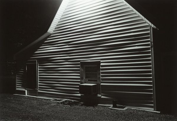Curator: Here we have Frederick Sommer’s "Taylor, Arizona," taken in 1945. What catches your eye initially? Editor: Well, the somber gray scale definitely lends a feeling of quiet decay. That broken wooden panel beneath the window… it's as if the house itself is wounded. Curator: Precisely. The image presents a detail of weathered wooden siding, dominated by a window offering a glimpse into darkness. Sommer, known for his sharp focus and modernist aesthetic, transforms the ordinary into something quite striking. Editor: I see that. It reminds me a little bit of Walker Evans’ documentary approach, yet there's something unsettling, too. A suggestion of loss or abandonment, conveyed through those drooping lines of the aged wood, even evoking images of mourning in early American culture, the way they displayed grief publicly. Curator: An interesting read. But the choice of materials is what truly resonates. The labor involved in building these simple homes and buildings, the physical realities of constructing communities in the Arizona landscape in the 40s... you know, it's also about the economic conditions, how people then built with limited resources. Editor: Yes, there's something so immediate and tangible about the hand-hewn quality here. It feels worlds away from today's manufactured perfection, calling on symbols of poverty. The window, of course, a classic motif of seeing and being seen… here, however, the interior is obscure, veiled. It creates a psychological distance. Curator: That veil you speak of reminds me of how he challenges our very notions of consumption. By immortalizing humble structures, Sommer elevates the material, redirecting value in times when standardized, manufactured items were prioritized over the basic means of human inhabitance. Editor: Looking closer, one finds something strangely beautiful in that dilapidation. Curator: Agreed, its very specific time is made iconic through capturing an image with what could be seen as an eye for material consciousness. A lasting visual legacy. Editor: Ultimately, this piece lingers in the mind long after viewing, due to those symbolic tensions around memory, loss and the artist’s skill. Curator: Indeed, it stands as an inquiry into the ways photography renders everyday realities into documents, loaded with social and historical meaning.