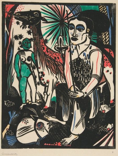 Antonio Berni's linocut presents us with children flying a kite. Look at the kite itself, a burst of geometric shapes and colors against the sky, acting almost as a mandala, a symbol that transcends mere play. The kite, tethered to the earth yet reaching for the heavens, echoes the ancient aspirations of the human spirit. We can trace this yearning back through time, from the soaring birds of ancient Egyptian art symbolizing the soul's journey, to the winged figures of Renaissance angels, each representing a bridge between the earthly and the divine. The act of flying a kite embodies the tension between grounded reality and boundless imagination. It is a longing for transcendence. The patterns, the colors, the very act of sending something skyward—all speak to our collective desire to escape the confines of the material world. It’s a universal language, one that touches the deepest chords of human emotion, reminding us of our shared dreams and hopes. This motif returns again and again.