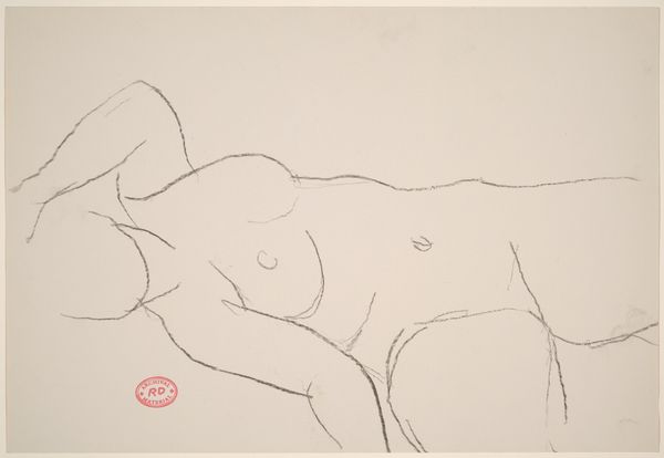 Editor: Here we have Richard Diebenkorn's "Untitled [female nude stretching while seated]," a pencil drawing made sometime between 1955 and 1967. I’m struck by its vulnerability; the figure’s pose seems both open and guarded. How do you interpret this work? Curator: What I see is a negotiation of power, a dialogue between artist and subject embedded in the very act of representation. Considering the period, we have to acknowledge the male gaze that historically dominated portrayals of the female nude. But does Diebenkorn subvert or perpetuate that gaze? Look at the figure’s downcast eyes and self-enfolding posture. Is it modesty, or a critique of objectification? Editor: I see your point about the male gaze. Do you think the abstraction, the almost fragmented quality of the lines, serves to deconstruct the traditional idealized female form? Curator: Precisely. By not adhering to a classical, hyper-realistic depiction, Diebenkorn potentially challenges the viewer’s expectations. Is he trying to reclaim female agency, or is it simply a formal exploration of the human figure? Consider the role of drawing itself – the sketch-like quality – what statement is the artist making about the finished and unfinished? Editor: That’s fascinating. I hadn't thought about the incompleteness adding to the sense of the figure having autonomy; as if she exists beyond the confines of the finished artwork. Curator: Indeed. Perhaps Diebenkorn invites us to question not just the representation of the female form, but also the power dynamics inherent in the artist-model relationship itself. The lack of detail allows for speculation; whose story is this? And how complicit are we in its telling? Editor: Thank you, this has definitely broadened my perspective. I see the drawing now as much more than just a study of form. Curator: Art becomes most interesting when we see beyond the surface, and consider the intricate web of social and historical forces at play.