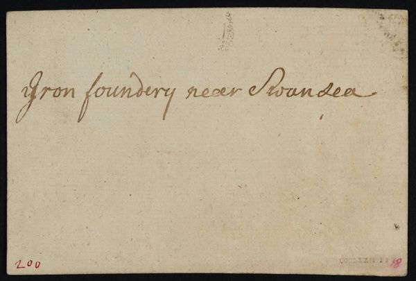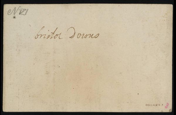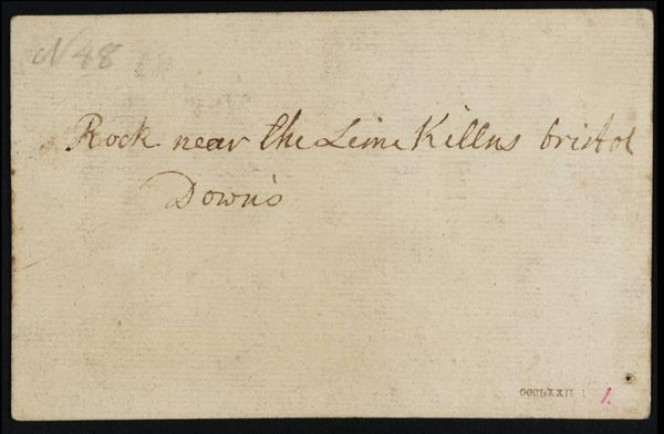 Curator: This small work is titled "[inscriptions not by Turner]" by Philip James De Loutherbourg. It's a rather unassuming piece, isn’t it? Editor: Yes, it's essentially a note on paper. The inscription, "top of Bristol Downs," is the only visible feature. The material itself, the paper, feels very basic. It makes me wonder about its intended use. Curator: De Loutherbourg, active in the late 18th and early 19th centuries, was known for his theatrical set designs and landscapes. Bristol was a key port, and Bristol Downs a popular site. Perhaps a quick notation during a field trip? Editor: Precisely. The work's function could be as a support for a larger project, maybe even a preliminary study. It underscores the labor-intensive processes artists used to create their artworks, it's a material record of that process. Curator: That's a good point. Its existence raises questions about artistic intention and value. I'm left considering the historical context of landscape art and the emerging leisure activities of the period. Editor: And I, as a materialist, see labor materialized.
