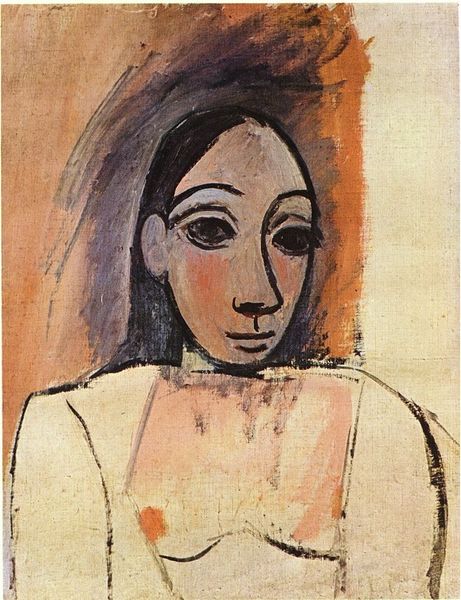 Curator: We're looking at "Meliboeus," an oil painting by Francis Picabia. Its current location is listed as a Private Collection. Editor: My initial thought is vulnerability, even fragility. The face seems veiled, almost trapped, with those fine lines crisscrossing it. It evokes a sense of constraint. Curator: That veil-like effect is interesting, especially given Picabia's experiments with transparency and layering in this period. The impasto technique definitely adds a tactile dimension to the work too. How do you think the symbolist aspects play out here? Editor: The botanical motifs intertwined with the figure strike me first. Those spiky, star-like shapes repeated across the face – what do they signify? And the almost fetal form held within the hands—it reads like nascent potential, carefully guarded, even imprisoned. Curator: It’s important to consider Picabia's exploration of materiality here, don’t you think? The figure seems almost fused with the canvas itself; an examination perhaps on identity itself, its construction from layers and brushstrokes. The means of production reflects the emotional tension it conveys. Editor: Yes, the texture definitely reinforces that sense of being grounded, weighed down perhaps. I keep coming back to that enclosed figure within the hands, its meaning ambiguous: protection? Control? Is it a past self, a future hope? Picabia offers few easy answers. The circular forms at the base bring thoughts about alchemy. Curator: Do you consider it symbolic of nature's continuous transformation or some connection of humans to earth? Or is that all merely pictorial flourish and embellishment? What if we looked into it using the perspective of labor? Editor: Picabia seems to weave something beyond conventional portraiture by alluding to psychological states. It’s almost like he’s revealing the sitter's inner landscape rather than their external appearance, as many Modernist painters would do. It does feel connected to deeper cultural memories of creation and fragility. Curator: And the brushwork becomes a crucial element, each stroke, each layer contributing to the construction, or perhaps deconstruction, of this identity. Editor: Well, "Meliboeus" leaves me pondering how deeply encoded even a single painted surface can be with layers of personal and collective symbolism. Curator: A piece that refuses easy categorization and challenges our perception of portraiture itself. A rich consideration, both materially and conceptually.