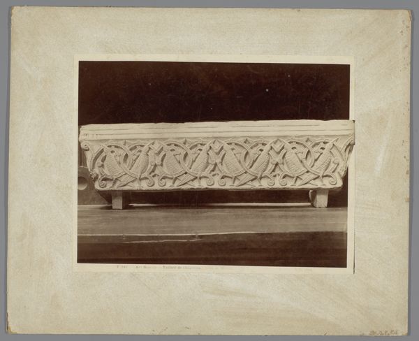 Gustave Eugène Chauffourier created this relief with leaf motifs, though we don’t know exactly when. Note the symmetrical arrangement of foliage sprouting from the center. This design is accented by a star motif, all resting above a meandering, serpentine ribbon. The vegetative patterns remind us of similar imagery in ancient Roman art, where such motifs symbolized growth, prosperity, and the cyclical nature of life. This ribbon or band also hearkens back to antiquity. Consider how these motifs have surfaced and resurfaced throughout the ages in funerary art, where they are associated with themes of mourning and remembrance, expressing a longing for renewal and the continuation of life beyond death. The star holds particular significance: an ancient symbol representing guidance, divinity, and hope. Its central placement suggests a beacon illuminating the path forward. Observe how the symmetrical arrangement and balanced composition, combined with these deeply rooted symbols, evoke feelings of harmony and a connection to timeless cultural narratives. These enduring motifs are a potent testament to the cyclical progression of symbols across time.