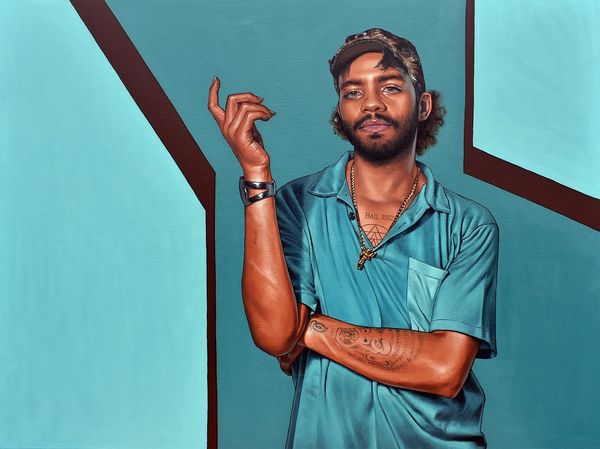 Monica Ikegwu made this painting called 'Chidera'. It’s a portrait in cool blues, with the kind of controlled brushwork that suggests the artist really took their time. It gives a sense of patience and, somehow, tenderness. The background reads like a rumpled sheet, yet the light, shadow and detail give it such form! It’s solid but soft. Like the rest of the painting, it’s neither hyper-real nor entirely representational. Notice how Ikegwu makes use of these contrasts throughout. The sitter’s dark hair and skin pop against the monochrome backdrop, with the blue tint creating a kind of double exposure effect. The way the light catches the bridge of the nose or the subtle sheen on the t-shirt tells us that this is a painting made with observation and intention. There’s something Hopper-esque in the way Ikegwu uses light and shade to create mood. But the contemporary subject matter and relaxed pose bring it right up to date. Art is never made in a vacuum; instead, it’s a conversation between the artist and the world around them, as well as the art of the past.