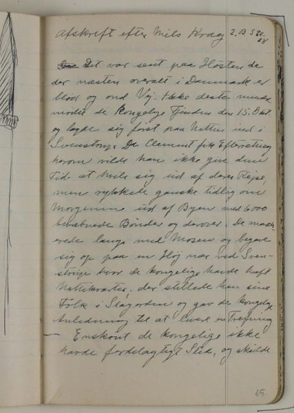 Curator: Here we have Niels Larsen Stevns's "Skitse af sværd, mål angivelser," dating from 1933-1934, a drawing rendered in ink and pencil on paper. Editor: Immediately striking is the sense of immediacy, the raw quality of the sketch. It feels like a glimpse into the artist’s process, a rapid transcription of an idea. Curator: The artist uses line with an intriguing degree of precision given its sketch-like nature. Notice how he employs hatching to create volume within the blades and how the script serves both a descriptive and compositional function. Editor: Yes, the presence of the handwritten notes gives the piece a unique intimacy. I’m particularly interested in how these notes might signify Stevns's concern with measure and proportion in relation to perhaps societal ideas about male prowess, "two men tall,” suggesting an almost mythical quality assigned to masculine power, perhaps even military might, during this period. Curator: I agree, there's a very interesting dynamic there. However, it’s just as interesting to consider the linear precision itself. Note how the line weight and density shifts in such a subtle, refined way to articulate form and depth. This speaks volumes about the artist's draughtsmanship. It is the intersection between description and analysis. Editor: And for me, that tension highlights the intersection between personal expression and historical context. Stevns was working during a period of significant social and political upheaval, and this sketch, seemingly a simple study of a sword, may implicitly comment on Denmark’s complex relationship with power and militarization during the interwar period. Curator: I find myself fascinated by the implied dimensionality within this two-dimensional space and the stark contrast it produces when rendered on paper. The artwork masterfully represents a form through an intense yet restricted palette. Editor: This small work, when viewed through its temporal and social lens, sparks significant inquiry concerning cultural conceptions of war, the male image, and the human proclivity for documenting conflict. Curator: Indeed, analyzing Stevns's sketchbook page allows us to appreciate his masterful articulation of form. Editor: And to understand how the tools of art may reflect power, ambition, and even apprehension about looming violence.