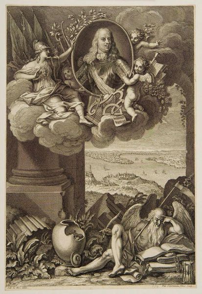 Curator: Here we have Pietro Santi Bartoli's "Jupiter Hurling Thunderbolts at the Giants." Editor: What a flurry! It looks like a celestial battle, but all rendered in this incredibly dense, almost frantic line work. Curator: The engraving technique certainly lends itself to that sense of drama. Note the careful orchestration of light and shadow. Bartoli uses hatching to define the musculature of Jupiter and the terror on the giants’ faces. Editor: Right, and the materiality of the engraving itself speaks volumes. Imagine the labor involved in meticulously etching this plate. Curator: Precisely, that intricate line work creates a visual hierarchy, guiding our eye through the chaos of the scene, emphasizing the divine power at play. Editor: It's amazing to see how the tools and process shaped the overall feeling, a tangible record of skilled labor. Curator: Indeed, the very composition underscores Jupiter's authority. Editor: Well, looking closely at the means of its production really changes how I experience it. Curator: I'll be contemplating Bartoli's use of negative space, and how it lends weight to the drama, for some time.