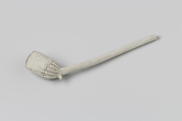 Editor: So, this is a fragment of a tobacco pipe, made between 1760 and 1800 by Cornelis Huijvenaar. It’s earthenware and it seems so fragile. Looking at it now, I wonder about the person who used it and what their life was like. What can you tell me about it? Curator: It's evocative, isn't it? Think of the clay itself, earthenware—pulled from the earth, shaped, fired. A humble material imbued with ritual and social meaning. The act of smoking, particularly in the Baroque period, wasn't just a pastime; it was a performance. What do you see inscribed on the bowl? Editor: I see some symbols… there are letters that make out a word, but it is hard to make them out completely with all the damage done to it. I guess the act of breaking this pipe was a significant ritual too then? Curator: Precisely! Pipes were often personalized, adorned with imagery or maker's marks. This piece would have carried coded messages for the smoker and their social circle. And a broken pipe? Think about the impermanence, the vanity—'vanitas'—of earthly pleasures. A memento mori in miniature. Can we tell if this specific design can be matched to specific groups or regions? Editor: That's a great question. The museum's notes only mentions that baroque era commonly uses clay. Maybe that’s something we can investigate more. I am still interested in the emotional weight these items carry across centuries. Curator: Yes, these objects—fragments, really—offer tangible links to past lives, allowing us to explore not only their practices but their cultural memory too. Every puff left behind in memory and clay. Editor: Absolutely, thanks for your insight! This made me realize the impact these symbols still have, even if we do not know the smoker's original intention. Curator: My pleasure.