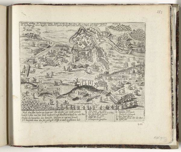 This is Frans Hogenberg’s print of the Siege of Heidelberg, made in 1622, showing the city under attack. It demonstrates how early modern Europeans used images to construct a particular view of war. Prints like this one played a crucial role in shaping public opinion and national identity during this era. Created in the Netherlands, it depicts the siege of a German city. Look closely at how Hogenberg uses visual codes to convey military strategy. From troop movements to defensive fortifications, the image creates meaning through cartographic language. The detailed rendering of the siege provides a visual narrative of the event. It transforms a complex military operation into a legible story. To understand this artwork better, research into the historical context of the Thirty Years' War and the role of print culture in disseminating news and propaganda is essential. The meaning of the image is contingent on understanding its historical and institutional context.