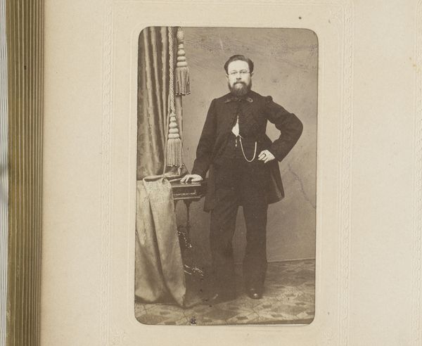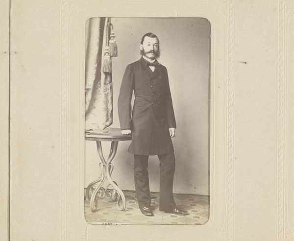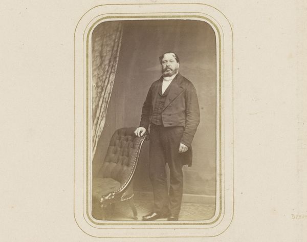 This photographic portrait of a man, standing by a chair, was made by Wegner & Mottu. The photographic process itself involves a complex alchemy of materials, from silver halides to developing agents, each playing a crucial role in capturing and fixing the image. What I find particularly interesting here is how the relatively new technology of photography intersected with older traditions of portraiture. Prior to photography, having your portrait painted was a luxury afforded only to the wealthy. But, with the advent of photography, portraiture became more accessible to a wider segment of society. Yet, even in this seemingly democratic medium, class distinctions persist. The man's formal attire, his confident stance, and the carefully arranged chair all speak to a certain level of social status. This photograph reminds us that even the most modern technologies are always embedded in social and cultural contexts, and that materials and making processes are never neutral, but always carry meaning and value.