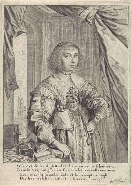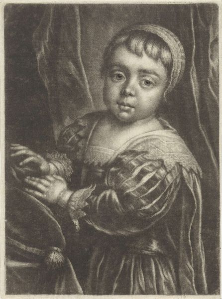 Editor: This engraving from 1743 by Jacob Houbraken, titled "Portret van Jozef II, Duits keizer, als kind," depicts Joseph II as a young child. The detail is remarkable, especially considering it's an engraving. What strikes me is the contrast between the elaborate royal regalia and Joseph's youth. How do you interpret the symbolic weight of these elements? Curator: Notice how young Joseph clutches a string of jewels almost like a toy, an indication of what is both given and expected. This is cultural memory being manufactured. What objects of power were intended to represent in 1743 are probably lost to contemporary viewers. What could they communicate today? Editor: Perhaps ideas about dynastic succession and the weight of inherited responsibility? Do you think Houbraken intended to convey anything about Joseph's personality, or was it purely symbolic? Curator: The softness of the child's face offsets the rigid expectation of empire. Think of the crown placed on the cushion behind him. Its grandeur dwarfs the boy, almost swallowing his individuality. Is it a projection of power, or an unconscious symbol of what that power could cost? Editor: That’s a fascinating idea. The composition almost suggests the crown’s weight. It gives me a lot to think about in terms of visual cues, and how they shape narratives. Curator: These potent emblems of royalty don't exist in a vacuum; they build layers of meaning over centuries. Symbols resonate, they evolve. Keep that in mind.