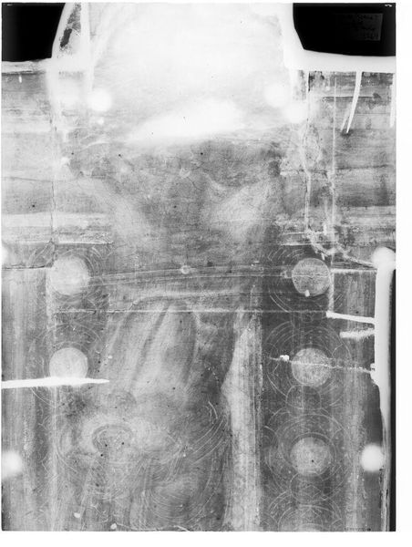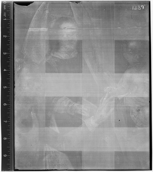 Curator: Here we have an X-radiograph of "Generosity of Scipio" by Massimo Stanzione, held at the Harvard Art Museums. Quite fascinating, isn't it? Editor: It is! The flowing lines, even in this ghostly rendition, suggest a moment of profound empathy. The forms seem almost to dissolve into light and shadow. Curator: Indeed. Radiography reveals layers of artistic intention, showing us how Stanzione constructed this scene and reworked elements to emphasize the theme of generosity. Editor: That act of giving, represented by Scipio, links him to ancient ideals of virtuous leadership. The very gesture carries echoes through time. Curator: Absolutely, and the artwork’s survival speaks to its continuing relevance within the cultural institutions that preserve and display it. Editor: It’s a reminder of the power of art to connect us, not just to the past, but to enduring ideas of compassion and ethical conduct. Curator: A fitting reminder, showcasing art historical analysis and iconographic interpretation. Editor: It certainly reframes how we view artistic expression and its lasting impact.
