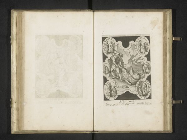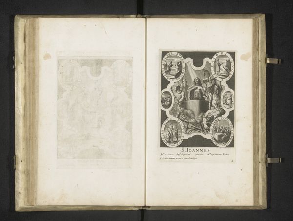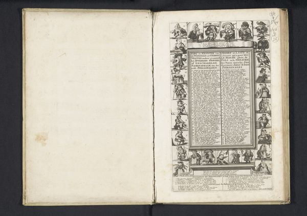 Curator: So, here we have an engraving from the early 18th century, made sometime between 1716 and 1720, by an anonymous artist. It’s the "Title Page for the series: Bombario Actionist and the Spirit of Esopus". Editor: My immediate reaction is baroque flamboyance meets philosophical pondering. It’s intricate and theatrical but hints at something deeper going on beyond the swirling ornamentation. It almost feels like a stage set! Curator: Yes, and those baroque flourishes certainly do carry symbolic weight. Think of them as the outward display of power and knowledge during that period, visual echoes of classical learning and religious authority. See how the title is framed within these complex, decorative elements? It emphasizes the importance and the value placed on the text that follows. Editor: It’s a beautiful cage, really! You get the sense the text itself, hidden behind the heraldic display, is some hidden, forbidden knowledge! Curator: That could be it! Considering the "Spirit of Esopus" mentioned, and Esopus of course referencing Aesop and his Fables, that framing could mean we have wisdom that's heavily guarded and revealed through layered meanings and moral allegories. And the visual language borrows so much from history painting traditions... Editor: Those cherubic figures do add a whimsical, almost mischievous note though, like they are on the verge of revealing secrets, or perhaps distorting the actual stories! Their lightness undermines the rigid, stern style in a way. Like philosophy meeting impish fantasy. Curator: Perhaps a knowing nod to the power of storytelling? By blending humor and morality the artwork and associated texts likely explore more serious social issues within a digestible narrative? The format would have resonated within its cultural moment, offering critical reflection disguised in pleasurable engagement. Editor: It's that tension—serious versus playful, hidden versus explicit—that really grabs me. The piece operates on these opposing levels all at once. And I keep wondering: What explosive narratives or wisdom are really contained behind this wonderfully constructed baroque title page? Curator: A fitting question indeed! What we’re seeing here, it seems, is the presentation of knowledge wrapped in both authority and a sense of play, indicative of the cultural milieu it came from. Editor: Nicely said. I’m off to search the rest of this Bombario's series. Now I simply must find out what lies hidden!
