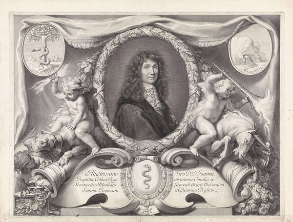 Gérard Edelinck made this portrait of Antoine-Armand de Fradet de Saint-Aoust with a burin. The lack of date invites us to consider the cultural and historical contexts of the 17th century, an era marked by rigid social hierarchies and the rise of absolutist power in France. Antoine-Armand de Fradet de Saint-Aoust is depicted as a figure of authority and nobility, wearing armor, surrounded by banners, weapons, and heraldic symbols, all of which speak to his high social standing. The intricate details of his garments and the embellishments around him reflect the opulence and extravagance associated with the French aristocracy of the time. But, who was he beyond his title? What were his beliefs? What was it like for him to live in a society deeply entrenched in power and privilege? This portrait, steeped in symbolism and grandeur, serves as a reminder of the power structures that once defined European society, prompting us to reflect on the legacies of aristocracy and the ongoing struggle for equality.