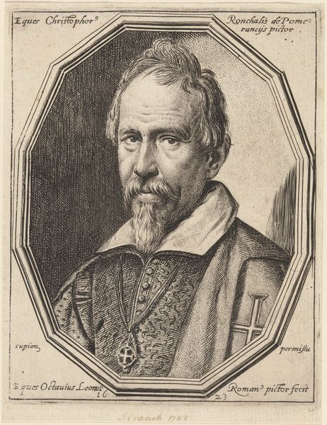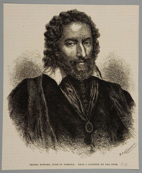 Editor: We’re looking at “Portret van Thomas Howard, tweede graaf van Arundel,” a print by Lucas Vorsterman I, created sometime between 1619 and 1641. The detail achieved with just line engraving is impressive. It feels quite formal and reserved; I’m struck by his almost melancholic gaze. What do you see in this piece? Curator: That melancholic gaze, as you call it, is so telling! It speaks volumes about the burdens of leadership, duty, and perhaps even a hint of disillusionment common in portraiture of that era. But look closer at what surrounds it: the detailed rendering of his clothing, his heraldic medallion… Editor: Yes, they appear meticulously rendered. Curator: Exactly! Each element is not merely decorative; they're signifiers. Can you decode any of the symbolism within? Think about his stance, his clothing, the lettering… What memories or aspirations were these meant to invoke or construct for viewers? Editor: I see… The lettering, definitely suggesting status, titles... and his dark clothing, perhaps indicative of seriousness and nobility. Was this visual language commonly understood at the time? Curator: Absolutely! Baroque portraiture was a carefully constructed visual language. This image served as a kind of cultural shorthand, reminding viewers of Howard’s lineage, power, and place within the social and political order. This wasn't simply about capturing a likeness, but constructing an identity meant to resonate across generations. Editor: That gives me a new perspective on portraiture in general. It’s fascinating how much information can be embedded in an image. Curator: Precisely. Now, consider how this carefully crafted image might have reinforced social hierarchies and collective identities in its time, and how those symbols continue to affect us even now. Editor: That's a lot to think about. I hadn't considered how much portraits actively shape cultural memory. Thanks!