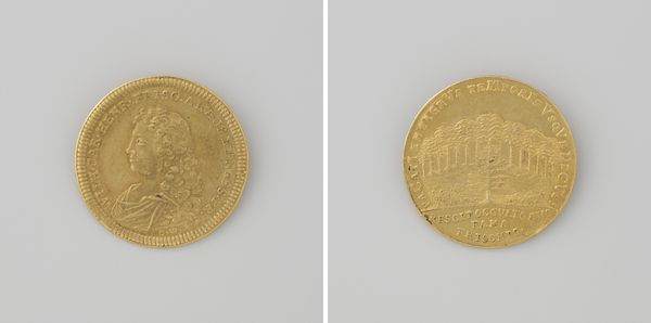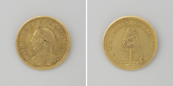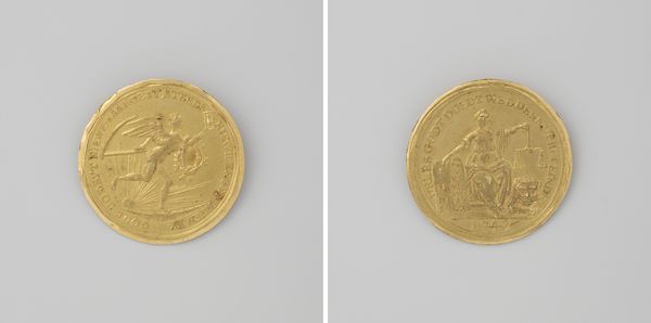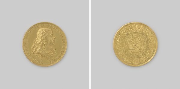This gilded silver coin commemorating the recapture of Augsburg was crafted in 1704 by Georg Hautsch. The coin's visual structure presents two distinct sides, each functioning as a field of symbolic representation. One side features a dove carrying an olive branch, flying towards a fortified city. The other side shows a seated figure, possibly an allegorical representation of Augsburg, with a shield bearing the city's arms. The composition on both sides is carefully arranged within the circular boundary of the coin, creating a sense of balance. This coin employs a symbolic language, where elements like the dove, olive branch, and fortified city operate as signs within a complex cultural code. The act of 'recapturing' is not merely a military event but also a symbolic reclaiming of identity and power. The circular form of the coin itself can be seen as a symbol of unity and wholeness. The artwork invites us to reflect on how such objects are not just historical markers, but meticulously crafted pieces designed to communicate specific ideological meanings.