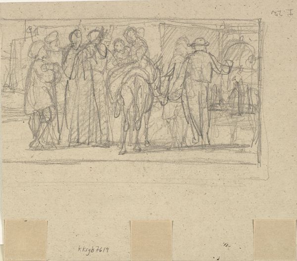 Editor: This drawing, "Illustration zu Schiller's Glocke," is by Philipp Winterwerb. The artwork, currently at the Städel Museum, is a pencil and chalk drawing related to Schiller's poem 'The Song of the Bell'. I notice the sketched figures; some seem downtrodden, others celebratory. It strikes me as an image with stark emotional contrasts. What's your interpretation? Curator: It's interesting how you picked up on the emotional contrasts. Looking at this through an activist lens, it brings up questions about whose stories are being told and how. "The Song of the Bell" is about community and progress, but who benefits from that progress? Notice how certain figures are burdened, suggesting uneven distribution of labor and reward. Editor: So you’re seeing it as a critique of societal hierarchies within this idealized Romantic vision? Curator: Precisely! Consider the time period, the 19th century. Romanticism often idealizes the past and nature, but this drawing hints at underlying social tensions, class divisions perhaps? Are these celebrations masking exploitation? Who is forging the bell, and for whose ears does it toll? Editor: I see what you mean. I hadn't considered the power dynamics implicit in illustrating this poem. Curator: Exactly. We have to question the narrative, understand who is empowered and disempowered within the depicted society, and by extension, in our own. Who controls the means of production, then and now? Editor: It makes me think about how art, even when seemingly focused on beauty or tradition, can reflect or challenge existing power structures. Curator: Absolutely! It invites us to think critically about the societal implications that are woven into art from any period. It’s about using art history to interrogate contemporary realities. Editor: I hadn't approached this artwork in that way before. Now I'm looking at it with a new perspective on the relationship between art and society.
