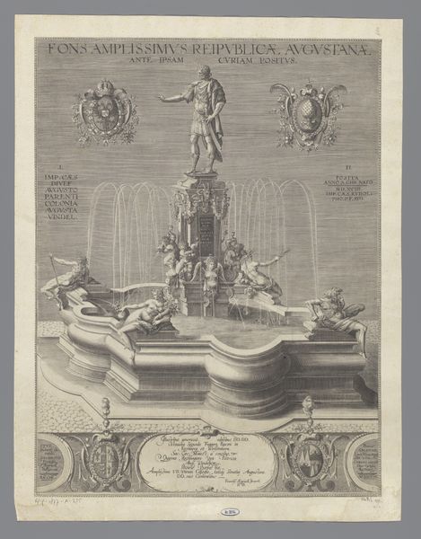 Editor: This engraving, "Monument for Frederick, Prince of Hesse," was created in 1793 by Cornelis Brouwer. It feels like a symbolic summary of a life, grand and yet... distant. I'm curious, what do you see in this piece, beyond the immediate historical context? Curator: I see a carefully constructed edifice of power, rendered through the language of Neoclassicism. Note how Brouwer uses the visual vocabulary of antiquity – the Roman columns, the idealized figures – to imbue Prince Frederick with an aura of timeless authority. But what resonates most strongly are the embedded symbols, carefully positioned within the memorial. What meaning do you take from the allegorical figures hovering around the portrait? Editor: They seem to be bestowing honors, with the clouds and divine light suggesting an ascension, perhaps? Is that common in memorials of this time? Curator: Precisely. The iconography blends classical apotheosis with contemporary princely commemoration. The putti, the laurel wreaths… they’re all signifiers of victory, virtue, and divine favor. Look also at the framed vignettes to either side. Consider them not as literal depictions, but as curated representations of Frederick's life. Do these historical 'snapshots' suggest any underlying themes in his life and leadership? Editor: They seem to depict battles and processions, organized moments of victory and civic order, very controlled narratives. The imagery projects power, but almost too deliberately? Curator: The artist shapes our understanding of history, crafting an idealised narrative that suited the tastes and expectations of the time. That curated representation of events and life experiences through a symbolic structure emphasizes what parts of the life should be memorialized, in turn emphasizing the legacy Brouwer wished to bestow. The symbolism chosen, even today, gives an immediate glimpse into Brouwer's hopes for Prince Frederick. What is the power that symbols and their meanings still give to us now, centuries later? Editor: I never thought of an engraving holding so much cultural weight. The layering of symbols, like a coded language of power, is fascinating and feels like an open portal to understanding not just the person, but the values of that time. Curator: Indeed. Through a careful examination of visual symbols, we are able to get in touch with cultural memories and the ongoing story of who we once were, and where we now are.