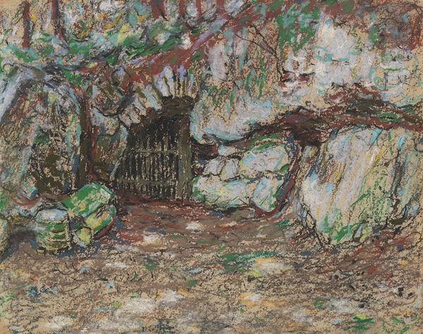 Editor: This is Petros Malayan's 1970 watercolor, "Kond, Old Women". I'm struck by how muted and somber it is. It really captures a feeling of quiet resignation. What do you see in this piece? Curator: I see echoes of a persistent cultural memory, specifically the hardships endured by women in rural settings, visualized here in this evocative watercolor. The image conveys both resilience and the weight of tradition. Do you notice how the composition itself—the women nestled against the ancient stone wall—creates a sense of enduring history? Editor: Yes, they seem almost like part of the landscape, embedded in it. Curator: Precisely. The artist has skillfully used the architectural structure, the wall, to suggest the weight of time and societal structures that these women carry. This is further accentuated by the subdued color palette which, as you observed, evokes a somber mood. It transcends the mere depiction of two women; it becomes a visual metaphor for generational endurance. Editor: So, it's not just a scene; it's about something deeper, like a connection to the past? Curator: Absolutely. Notice the symbolic implications of the wall, almost maternal or protective, like embracing a culture. This links the women to the location itself, imbuing them with a deep cultural resonance and shared history. Editor: It’s amazing how much can be conveyed through seemingly simple images. Curator: Indeed. Visual symbols unlock so much meaning, echoing across generations. It makes you consider what symbols and imageries endure in our time, carrying our emotional and cultural narratives. Editor: It’s certainly given me a new perspective to ponder! Thank you for sharing your insights!