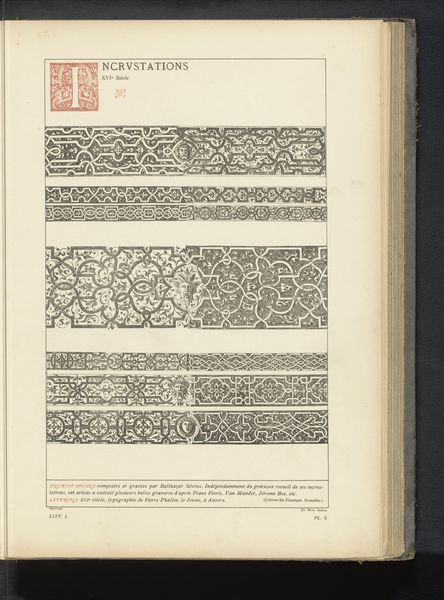 This anonymous print, titled "Gedecoreerde friezen," presents a series of decorative friezes, captured through monochromatic printing. The composition arranges these friezes in horizontal registers across the page. Each frieze is teeming with intricate details, featuring a combination of organic forms, figures, and ornamental flourishes. The use of grayscale renders the textures and patterns prominent, allowing for a nuanced appreciation of the carved reliefs. The play of light and shadow gives depth to the composition, emphasizing the tactile quality of the original sculptures. The repetitive yet varied nature of the friezes invites a structuralist reading, suggesting a system where elements are combined to create a larger whole. The formal qualities of the print highlight not only the artistic skill involved in the sculptures but also the intellectual framework through which they were conceived and represented. This piece exemplifies how an artwork’s structure and form embody complex cultural meanings.