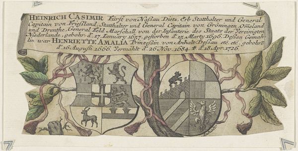 This is the Wapen van Maurits, prins van Oranje, an engraving made in the Netherlands, but created by an anonymous artist. The material here is paper, and the process is printmaking. Look closely, and you’ll see how the artist used lines to create areas of tone and texture. It’s a relatively simple technique, but the effect is quite sophisticated. The medium of printmaking allowed for the wide dissemination of images and information. In this case, the image served to assert the power and status of Prince Maurits. Consider the labor involved in the production of this print. From the preparation of the printing plate to the actual printing process, skilled craftsmanship was required. Yet, the final product was relatively inexpensive and could be distributed widely, contributing to the construction of Maurits' image and authority. Ultimately, the Wapen van Maurits is a reminder that even seemingly simple objects can be rich with meaning. It challenges us to look beyond the surface and consider the complex interplay of materials, making, and social context.