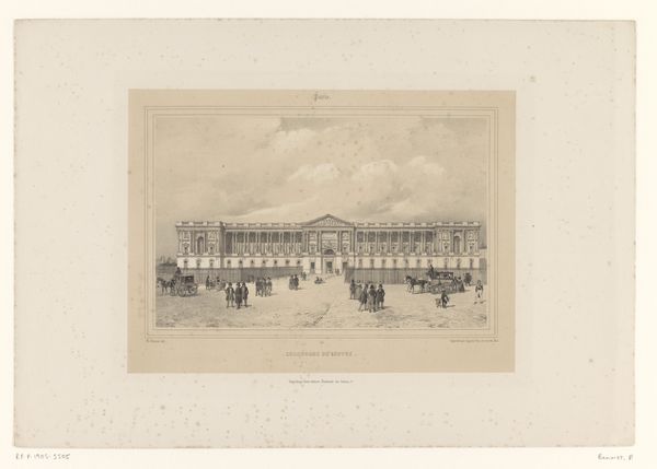 Editor: This engraving from 1818 by François Louis Couché depicts the Jardin du Palais-Royal in Paris. I'm struck by how orderly and composed it feels, even with all the people strolling about. What do you see in this piece, beyond just a cityscape? Curator: Order is indeed a key impression, but consider where and when this image was made. Neoclassicism valued rationality after periods of revolution and immense cultural change. What symbols do you notice of that cultural memory? Editor: Well, the architecture is very symmetrical and grand. And the people seem to be enjoying leisurely activities, a picture of peace. Curator: Exactly. But look closer at those figures, their placement, their activities. Do you notice anything beyond leisure? Think about the symbolism of the garden itself – a space of controlled nature, of social display. How might that reflect broader societal ideals? Editor: I suppose it’s not just a nice scene, it's conveying ideas of order and control… like a return to stability. The garden being designed rather than natural gives that away. So it represents a specific set of values. Curator: Precisely. The fountains, the precise rows of trees – all point to humanity’s attempt to shape its environment and, by extension, society. Do you see how the artist’s choices reinforce this? Even the act of capturing it as a print makes it an object meant for wide distribution – like an attempt at molding memory itself. Editor: It makes me think about how much images can convey without explicitly stating something. Thanks, I will look closely at landscapes and cityscapes going forward! Curator: My pleasure, a garden's image and purpose shift through time. Always ask, what story does the garden choose to tell about its history?