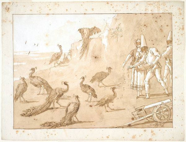 Curator: Here we have “The Stoning of Saint Stephen,” attributed to Luca Cambiaso, crafted sometime between 1554 and 1627. The medium includes ink, pencil and watercolor on paper. It’s currently held in the Rijksmuseum collection. Editor: A flurry of violent energy leaps from the page, doesn't it? There’s something incredibly raw about this composition—the dynamic angles, the unfinished figures. The lack of detail actually amplifies the sense of chaos. Curator: Absolutely. Cambiaso, known for his Mannerist style, really emphasizes dynamism and distortion. Notice how he groups the figures – a series of interlocking shapes. The scene gains intensity through its staging of conflict. Editor: I'm struck by the almost performative nature of it. Look at the figures rearing back to throw. Are they stoning a martyr, or enacting ritualized power? Where are we, ethically, in our viewing? Curator: Indeed, Cambiaso, within the context of his era, was commenting on power, the role of the church, and state. Think of religious tensions simmering through Europe. Works such as this acted as tools. The paper wasn't just a space for artistic creation; it was the staging ground for broader dialogues around faith and control. Editor: You mention faith—the stark, washed tones convey a definite mood. Is this to inspire introspection or invoke a stark reality of religious conflict? Or both? The sketchy lines create an undeniable air of spontaneity, too. It reads almost as reportage. Curator: Precisely. While not photographically representational, the rawness lends the artwork that air of immediate response. Editor: A fascinating convergence of form, narrative and the politics of belief. Curator: Quite. The work's power lies as much in its aesthetic execution as its position amidst sociopolitical discourse. Editor: Thank you. The stark presentation offers much to contemplate on artistic execution and the times in which it was made.