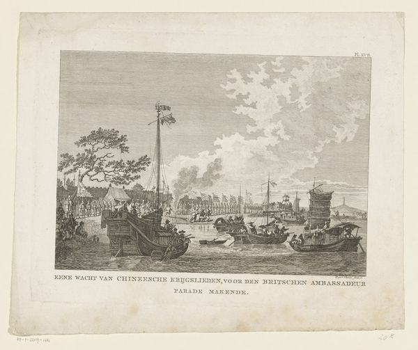 Curator: Here we have “Zoutwinning in Zeeland, ca. 1600,” or "Salt Extraction in Zeeland," a print by Jan Caspar Philips created after 1750. The scene presents figures busily working in a coastal landscape. What catches your eye? Editor: It's remarkably…muted. Even though there’s so much activity depicted, a bustling harbor scene with workers, boats, and buildings receding into the distance, it’s all rendered in such a delicate, almost subdued palette. It conveys a feeling of labor, but also of the quiet, everyday reality of it. Curator: Philips created this well after the activity itself, and that temporal distance undoubtedly influences its romanticized perspective. We should ask, how did this industry shape the social structures and hierarchies of Zeeland? Salt was incredibly valuable, a necessity for preserving food. Who benefited, and who toiled under harsh conditions? The engraving doesn’t show the back-breaking labour as vividly as it does the picturesque charm. Editor: I agree, the focus is clearly on the iconography of labor rather than its stark realities. Look at the tools and techniques—the carefully orchestrated choreography of workers extracting salt. This is how a community, or this area extracts meaning or value from the natural elements available. Water to extract the mineral of salt. It really serves a double purpose of representing a specific locality but in a methodologically didactic process of labor and how people can manipulate and derive value. Curator: And how that extraction intersects with concepts of regional identity and power. Zeeland's wealth was linked to this industry, fueling its influence within the Dutch Republic. The print functions almost as a visual claim of ownership, emphasizing the province's productivity. Who and how is the subject created to represent its region and in this case economic prowess. Editor: The large clouds billowing above might also represent that sense of extraction, as well as the ever looming precarity of it, knowing clouds contain rain, can signal an upcoming change in conditions, from a shift in landscape conditions from water as life giver to water as potentially disastrous for crops. They underscore that ever important need for natural extraction to bolster the state or region. Curator: An excellent point! Perhaps we can then consider those billowing forms, even given its delicate monochromatic rendering, a warning. They serve as potent reminder of the socio-political weight that clouds are known to have: from a force of nature, that dictates change through weather. Editor: So, a peaceful scene initially, but layered with signs and anxieties of the extraction of natural elements! Curator: Exactly. It's a reminder that even seemingly bucolic landscapes are steeped in complex stories of labor, power, and resilience.