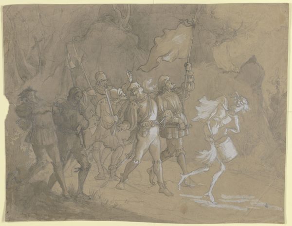Johann Albrecht Dietzsch created "Zug von Reitern und Fußgängern" using pen and brown ink in the 18th century. This artwork provides a glimpse into the hierarchical structures of the time. The riders on horseback are contrasted with the weary foot soldiers. This difference speaks volumes about class divisions and their impact on lived experience. Think about who had access to resources, like horses, and who was left to trudge on foot. The figures at the front seem almost broken down by their journey, their weariness palpable. Even the dog looks tired. There is little sense of forward momentum here. Instead, we find ourselves contemplating a moment of pause. What does it mean to be part of a group, yet experience such different realities? This drawing encourages us to consider the human cost of progress and the stories of those who are often overlooked.