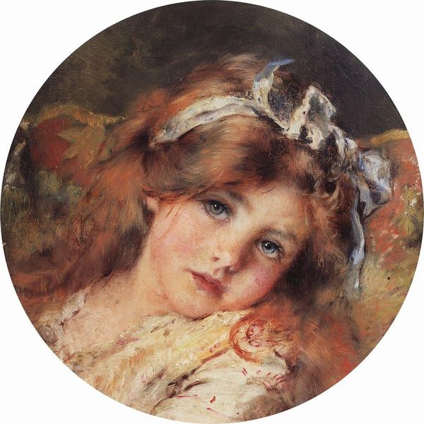 Curator: Oh, this is lovely. Pierre-Auguste Renoir's "Girls Putting Flowers on Their Hats" from 1894, rendered in his signature style using oil on canvas. It's captivating, isn't it? Editor: It absolutely glows. There’s a sense of warmth, like golden afternoon light just draping over everything. And the hats! They’re positively whimsical. Makes you want to frolic. Curator: Indeed. Hats have always carried symbolic weight, you know. Adornment, status, protection, transformation. The act of decorating them here suggests a ritual, a rite of passage perhaps, into the world of feminine display. Editor: That’s a brilliant reading! I hadn’t considered the hats as these sort of...powerful objects. I just got lost in the sheer visual delight. The colours sing; that poppy red against the ochre straw, yum. And look at how Renoir blurs the edges, gives them a softness... Curator: A deliberate softening, yes. This contributes to that Impressionistic "snapshot" feel, but also hints at an idealized memory. It’s a portrait of youth, but also memory of youth. Childhood nostalgia becomes the underlying theme. Editor: So true, that slightly unfocused dreaminess, almost out of reach...But tell me, with all those blurred outlines, is there perhaps also a fragility to the image? Are the flowers a signal to this evanescent character of beauty and life? Curator: Quite possibly. Flowers, especially cut flowers, are potent symbols of the transient nature of beauty. They remind us that life, like these carefully arranged blooms, is beautiful but fleeting. Renoir underscores this message further by depicting these girls in such an ephemeral, Impressionistic manner, underscoring a delicate awareness of time's passage and youthful beauty's vulnerability. Editor: So much to ponder! I feel as though I’ve witnessed a whispered secret between sisters, or close friends...Such an airy picture full of rich details! Curator: Precisely, its beauty hides those symbolic depths so beautifully. A gentle reminder about beauty's temporality dressed in gorgeous colors. Editor: Well, that definitely adds an unexpected richness to what seems, at first glance, like a purely decorative artwork.
