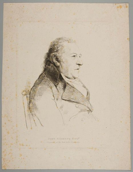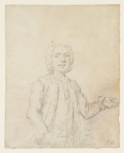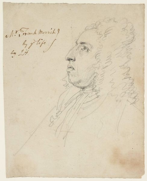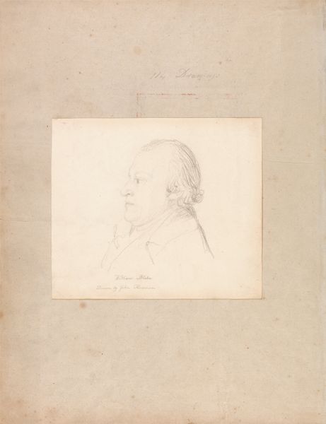 Curator: Look at this self-portrait, entitled "Un Cativo," a graphite drawing on paper. What strikes you most? Editor: It's wispy, ethereal, isn’t it? Almost unfinished. The texture of the paper seems integral to the overall effect, softening the lines, blurring the intended boundaries. Curator: It is delicate, certainly. Richardson uses line to subtly define the contour of his profile, and this deliberate softness resonates. He called it “Un Cativo," an evocative Italian phrase indicating imprisonment, often understood to suggest one in captivity. It creates a powerful dialogue between vulnerability and artistic freedom. Editor: Captivity—that's heavy! Although the style has elements of academic art, it's very lightly sketched. This choice creates tension. One wonders if the "captivity" here references being bound by those academic conventions. The gaze looks almost… vacant. Curator: Intriguing. Given Richardson's position as a leading portraitist and art theorist, his own image hints at a broader theme. The slight melancholy in the depiction carries emotional weight. Remember, portraits are more than just likenesses, they’re assertions of identity, but what happens when that identity is strained, when a persona feels trapped? Editor: Yes, I follow. And it also points to the materiality – it's *on* paper, captured in graphite, quite literally bound by the artist. We're accustomed to seeing oils on canvas conveying wealth, but here the materials almost become performative of the concept. Curator: Precisely! The "imprisonment" could apply to societal expectations or even the artist's internal conflicts made manifest via simple graphite strokes. This image asks us to contemplate layers of symbolic meanings—constraints placed upon us all. Editor: It is really a thoughtful work. Its visual openness lets the viewer find resonance. I appreciate its lightness juxtaposed with the gravity. Curator: Indeed. And for me, this offers a moment to reflect on how art functions as both a personal expression and cultural reflection. Editor: And how formal choices amplify symbolic meaning. Excellent!