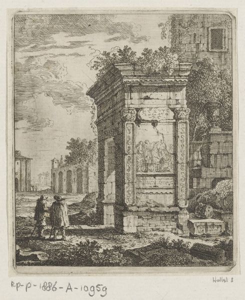 This is John Byfield's rendering of the Arch of Titus in Rome. The arch, erected to honor Titus's victory in Jerusalem, displays an inscription bearing a potent message: the Senate and Roman people dedicate this to the divine Titus Vespasianus Augustus. The arch as a motif carries echoes from triumphal arches to sacred portals. Note the winged victories flanking the archway. This image reminds me of similar figures, such as angels in Christian art, or the Greek goddess Nike. In each instance, these winged figures embody triumph, memory, and divine favor. Consider how such symbols recur across cultures and epochs, morphing yet retaining a core essence. The psychological weight of victory and remembrance, embedded in this stone and re-imagined across the ages, is a powerful and enduring force. The visual language of triumph, as seen here, perpetually resurfaces, adapting, and echoing through the corridors of time.