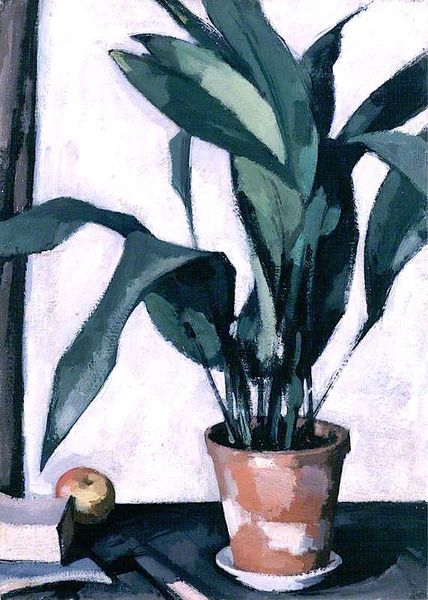 Curator: Samuel Peploe's "Lilies," executed with oil paint, immediately presents itself as a study in contrasts and light. Editor: Yes, there’s something serene yet almost severe about it. The stark white lilies against the muted backdrop create this… weighty silence. Is that the impasto technique giving it so much presence? Curator: Precisely! The impasto contributes not just to the physical texture but also to the symbolic weight. Lilies have been associated with purity and resurrection throughout history. Given Peploe's engagement with Post-Impressionism, are we seeing a nod toward something beyond the mere depiction of a floral arrangement? Editor: I wonder, though, how much the lilies are a subject, and how much they are objects on which to explore the material possibilities of paint itself? Look at the way the light hits the petals, those thick dabs – are they brushstrokes first and foremost? Is it really about representing the lilies’ conventional meaning? Curator: The very visible brushwork pulls us back to the artist’s hand, you're right. But the choice to depict lilies specifically isn't arbitrary. The symbolism is part of the painting’s history and impacts our perception whether we're conscious of it or not. These flowers, especially in a stark palette like this, bring notions of mortality and grace. Editor: Perhaps Peploe's more interested in exploring how such conventional beauty can be built up – or even deconstructed – through physical actions. We are also looking at something reproducible: oil paintings became affordable at a certain moment in time and shaped consumption around representations, including still lifes. Curator: True, but let’s not forget the psychological depth conveyed here, playing on layers of associations, memories and long-standing significations. Editor: Alright, point taken! It does ask a lot of you to ponder such things through a flower, doesn't it? Curator: Absolutely. These dialogues help us enrich that pondering. Editor: Right. They pull in threads from the history of objects and meaning of stuff, and remind us these still lifes live on!