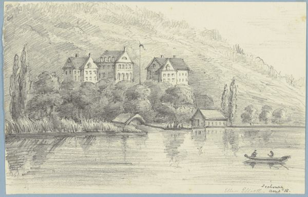Curator: Here we have Fritz Stoltenberg’s "Uhlenhorst," a drawing from 1893. My immediate reaction is the tranquility it evokes, despite the bustling river scene. There's a sense of wistful elegance. Editor: It’s fascinating to consider the means of production of such a scene. Drawings like these, likely made for reproduction, fueled a demand for picturesque views of leisure and development during the rapid industrialization of the late 19th century. We’re looking at a commodity as much as a view. Curator: I agree. The very visible, yet subtly shifting lines define space so exquisitely—it directs your eye toward architectural grandeur but it doesn't disregard the watercraft moving across the river and its rippling surface. It’s almost like observing the world through the lens of selective perception. Editor: And think about the materiality of this work: the specific paper chosen by Stoltenberg, the quality of the ink, the tools used to apply it. These elements speak volumes about artistic practices during his era and the intended audience for these reproduced landscapes. Were these readily available images affordable? Who exactly was meant to gaze upon them? Curator: That tower—such a dominant vertical element! And consider how he’s used a restricted palette, focusing instead on varying textures of shadow to convey volume and depth, drawing us into an idyllic scene of the leisured class as seen from the banks of Hamburg. Editor: The presence of labor, of the working class facilitating leisure—evident from the boats plying the waterway—is key to understanding this image’s social context. It invites questions about the socio-economic relationships shaping Stoltenberg's representation of "Uhlenhorst". Curator: Indeed. What appears to be a snapshot of harmony perhaps obscures deeper inequalities. Still, in considering form, the sailboats slicing through water is beautiful. Editor: Right, but it is important not to gloss over this point and note the processes and dynamics involved in creating and circulating these idealized views, processes of labor, class, and consumption of imagery in 19th century Hamburg. Curator: Ultimately, it underscores the power of even a simple drawing to reflect, or refract, its historical moment. Editor: Precisely. The appeal to form highlights production.