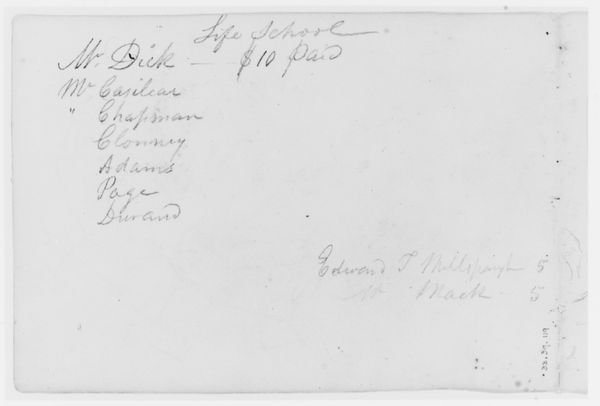 Editor: This is "Accounts (from Sketchbook)" by Asher Brown Durand, dating from 1796 to 1886. It’s a drawing using ink, graphite, and pastel on paper, and it's held at The Met. I find it interesting how something so mundane, like financial accounts, can become a piece of art. What catches your eye in this piece? Curator: Well, I’m drawn to the historical context and what it reveals about everyday life in that period. This isn't just about numbers; it's a glimpse into Durand's social interactions, modes of transportation like the "boat fare" or "coach", and the expenses he incurred. We must ask: Whose stories are typically valued in art history and how can understanding documents like this help fill gaps in historical representation? Editor: So it’s less about the artistic merit of the lettering itself, and more about what the document signifies? Curator: Exactly. The materiality, the handwritten quality… it all contributes to an intimate portrait. Were these accounts for personal or professional use? Does the act of recording create a different understanding of social class or labor roles in his environment? Even the attempt to organize tells a story. These small glimpses show aspects that might inform social issues like wealth distribution at the time. What can these records tell us about the community that he lived in? Editor: That's fascinating; I didn’t consider how much information you could pull from something so simple! Curator: It invites us to critically engage with seemingly ordinary artifacts. These accounts are points of connection to history and could enrich our narratives beyond the typical high art pieces displayed. This reframing acknowledges those missing in dominant narratives, even if it only begins with deciphering handwritten notes. Editor: I'll definitely look at similar works in a different light now. Thank you!