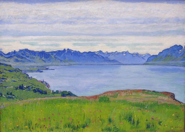 Ferdinand Hodler painted Lake Geneva with Savoyerbergen with oil on canvas. You can see Hodler was really trying to feel out the mountains, the water, the land and the sky. There is so much repetition in the ridgelines of the mountains, the ripples on the water, and the curves on the land, they all mirror each other. The physical texture of the paint feels so important here. It’s like Hodler is piling up strokes of paint to build a sort of echo of a landscape. I love the way he uses blue and green, mixing them together to suggest shadows, depth, and volume. The blue is so vibrant, particularly in the mountains, where it meets the snowy peaks. It's this contrast, this back and forth between the cool blues and whites, that gives the mountains their monumental presence. Hodler’s landscapes make me think of Cezanne, who also looked at the world and turned it into something solid, grounded and real.