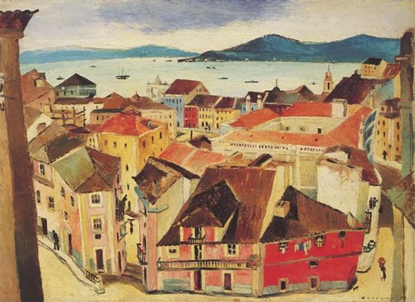 Curator: Let's explore this watercolor and mixed media painting titled "Sem Título" ("Untitled") by Alberto da Veiga Guignard, created in 1952. It's a cityscape with a naive quality. What strikes you initially? Editor: It feels almost dreamlike. The colors are muted, and the perspective is slightly off, giving it a sense of otherworldly nostalgia. How do you interpret this work, considering the period it was created? Curator: Considering Guignard's personal history and the political climate of 1950s Brazil, this work can be read as a complex reflection on identity and belonging. Notice how the buildings, especially the churches, dominate the landscape, yet the details are soft and somewhat blurred. This could represent the powerful influence of the church and colonial past in shaping Brazilian society, even as the country was modernizing. What social tensions might the artist be subtly addressing through this slightly melancholic scene? Editor: Perhaps the idealized depiction masks underlying social inequalities. The romanticized cityscape doesn't show the harsher realities of urban life for many Brazilians at the time. Curator: Precisely. And consider that Guignard, though celebrated, often felt like an outsider within the art world due to his background and artistic style. This sense of alienation might be subtly encoded in the painting’s slightly unsettling perspective and dreamy atmosphere. The "Untitled" nature of the work could further suggest a reluctance to define or confine his personal experiences of his social or cultural context. Does this shift how you view the artwork? Editor: It does. It makes me think about the artist’s positionality, not just what’s represented. It suggests that idyllic scenes can conceal complex, personal narratives about power and marginalization. Curator: Indeed. Art provides a critical lens through which we can examine social structures and individual experiences. It also highlights the intricate relationship between representation and reality. Editor: I learned that beauty does not mean escaping. It can confront and trigger debate on identity, representation, and societal issues.