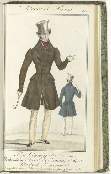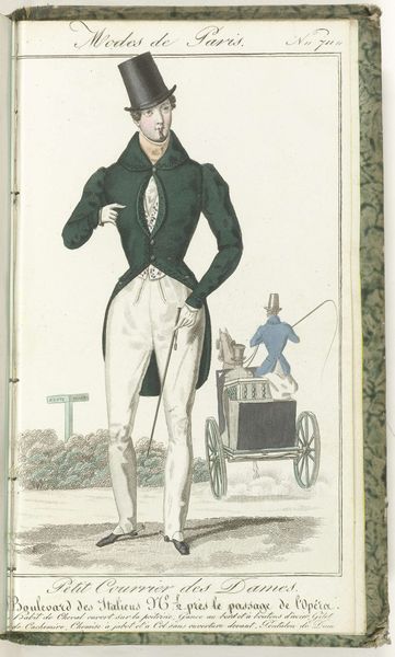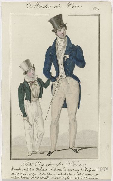 This fashion plate was made in Paris in 1825, and was published in the Petit Courrier des Dames. It presents the latest styles for men and boys in the heart of the Bourbon Restoration. Here, we can see the visual codes of class distinction at play. The tall figure's elegant ensemble speaks of aristocratic leisure and anachronistic privilege. The details, like the felt hat and tailored coat, signal a self-conscious return to pre-revolutionary elegance, a visual attempt to rewrite history. Next to him, the child’s costume suggests an attempt at playfulness. Note the way the two figures relate spatially. What are we to make of their relationship? To truly understand this image, one needs to dig into the fashion magazines of the time, which were the institutions that dictated style and taste. Scholarly work on fashion and social history, and archival research into the fashion industry of the time, are vital to understanding its meaning. By doing so, we can gain a more nuanced understanding of the public role of such imagery.