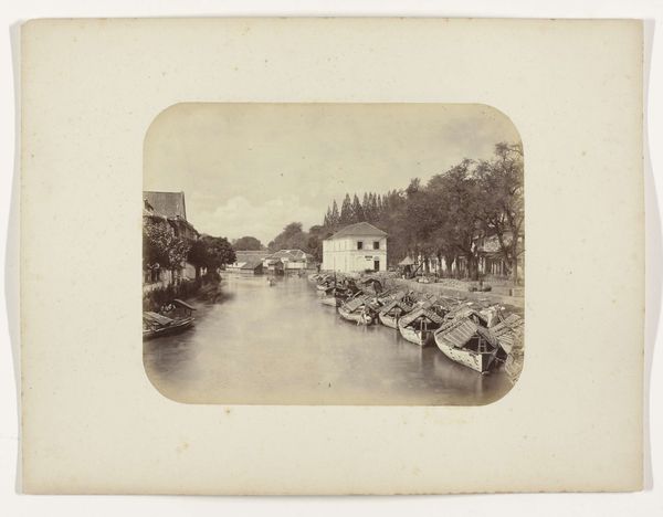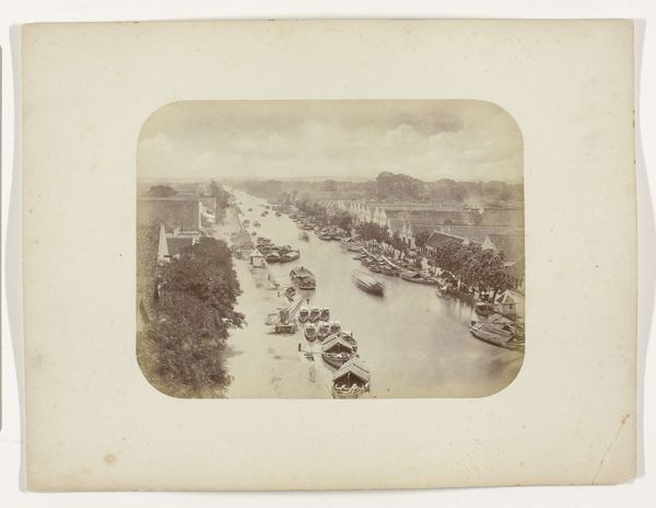 Herman Salzwedel captured ‘De Kali Mas’ using photography, a relatively new medium in the 19th century. Photography, as a mode of production, made images accessible and reproducible in ways previously unimaginable. The tones, textures, and details visible in this albumen print are all a direct result of the chemical processes involved. The image is made through a combination of scientific precision and the artist’s aesthetic choices. What's striking is the way this technology frames the river; the composition focuses our attention not just on the waterway itself, but also the buildings lining the riverbanks. This juxtaposition invites reflection on the relationship between human settlement and the natural world, hinting at the labor and resources required to build and maintain these structures. By considering photography as both a craft and a technological innovation, we gain a richer understanding of its cultural impact and social implications, blurring the lines between art, industry, and everyday life.