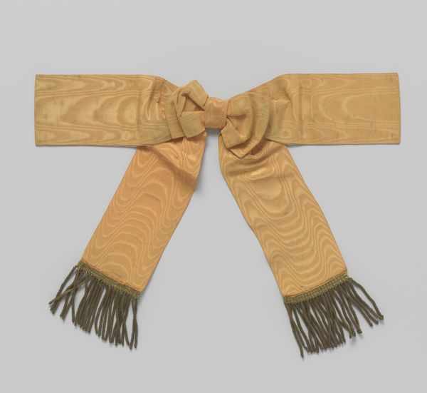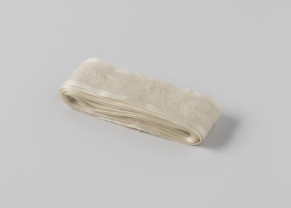 Curator: It practically floats, doesn’t it? Like spun sugar hardened into a form. Editor: Indeed. Before us, we have a delightful hat crafted sometime between 1903 and 1910. Its full title is "Hoed naturelkleurig stro, platte bol en brede rand" a rather apt description if I do say so myself. The maker is noted as Rosa Goutureau. It's mainly straw and textile, both combined with considerable effect. Curator: Rosa was onto something. The pale straw echoes natural, muted light; the hat embodies fin-de-siècle languor, all suggestion and airy grace. Note how the broad brim, almost excessively wide, throws the face into intriguing shadow. Editor: Agreed. Observe the concentric weave of the straw—it acts as a unifying texture that guides the eye. I also appreciate the tulle; its placement is a deft touch that both softens and subtly distorts the underlying form, offering visual and material contrast. And those feathers! Curator: Ah yes, the exuberance! Those off-white plumes offer vertical drama, a visual counterpoint to the hat's inherent horizontality. Yet the color unity remains, preserving its restrained elegance. I detect hints of influence from Japonisme. Editor: Oh? Interesting! I am leaning towards something wilder, more personal, even decadent. What is a lady wearing such an adornment about to do? It screams, "take me out!" Though a painting perhaps it inspires rather than a social call. The tulle gives the ensemble a kind of softness, maybe even making the wearer dreamlike or ephemeral. Curator: Perhaps you’re right! It's the dialogue between form and whimsy that’s utterly compelling. Even as we apply structure, emotion spills through. Editor: The pure emotion of a memory perhaps! It strikes me as the end of a very old story, and the beginning of a new one. What better could art provide for our journey! Curator: Quite. A silent sentinel in our decorative art collection, radiating whispers of days gone by, yet also, hope for an enlightened and stylish future!